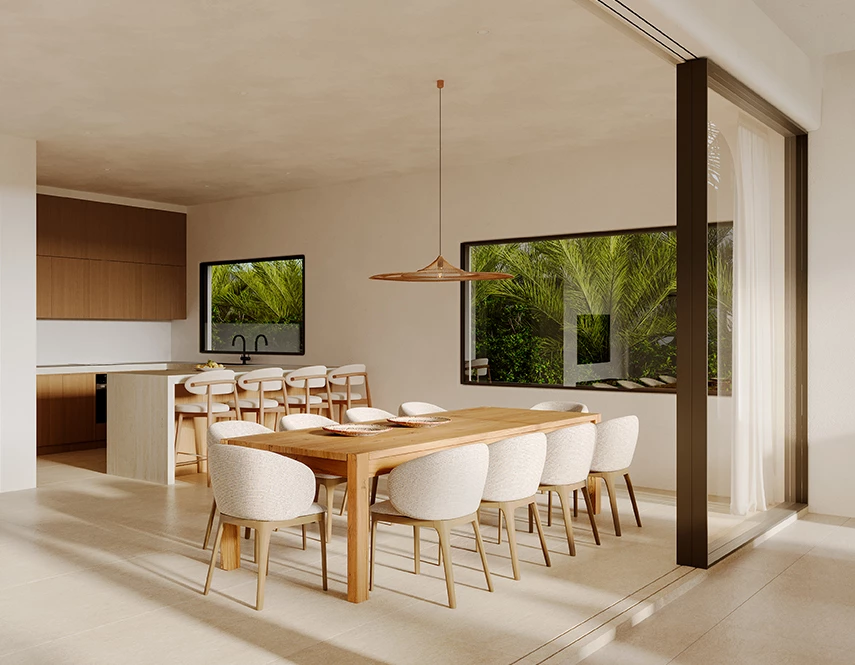 Spanning three levels of refined coastal living, the Anguilla Grand House offers four to six bedrooms, including options for private cottages and a garage suite. Defined by its soaring atrium and seamless indoor-outdoor flow, the residence features a 36-foot pool and expansive terrace. With up to 7,845 square feet of total space, the Grand House captures sweeping ocean views from its rooftop suite and lounge.