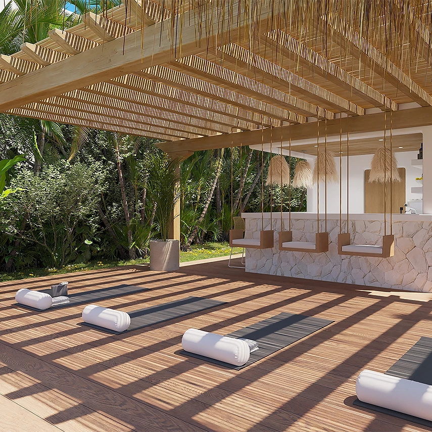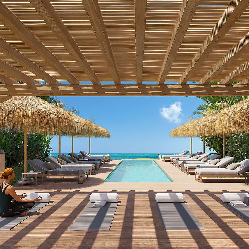 - Fully equipped fitness centre, beachfront yoga deck, lighted tennis and pickleball courts