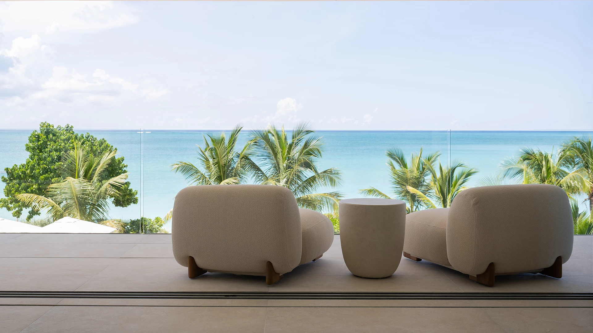 The 52’ rooftop terrace lounge offers panoramic views of Grace Bay beach, and is the perfect gathering space, complete with ample plush seating and a wet bar for entertainment.